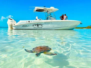 Explore the beauty surrounding Spanish Wells, Eleuthera, or Harbour Island with one of our experienced captains. Popular activities enjoyed by our guests include: fishing, snorkeling, sand bars, feeding the turtles and stingrays, swimming with the pigs, visiting the swings in the middle of the sea, or lunch at a waterside restaurant. Exotic Excursions provides ice cold soft drinks , bottle waters and snacks . We also supply masks, fins , snorkels & free parking at Genes Bay Dock (ask for details). Guests are welcome to bring other beverages. We recommend bringing towels onboard for the tour. Guests can choose to be picked up at one of three pickup locations (Spanish wells, Genes Bay Dock (Eleuthera), or Romora Bay Marina (Harbour Island). Pricing varies dependant on pickup location. Please Contact us if you have any questions or go ahead and book now!