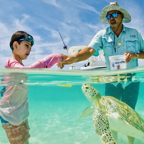Who wouldn't jump at the idea of feeding wild sea turtles in their natural habitat. Captain Sheldon will jump in the water with you and show you the ropes on how to safely feed these beautiful creatures.